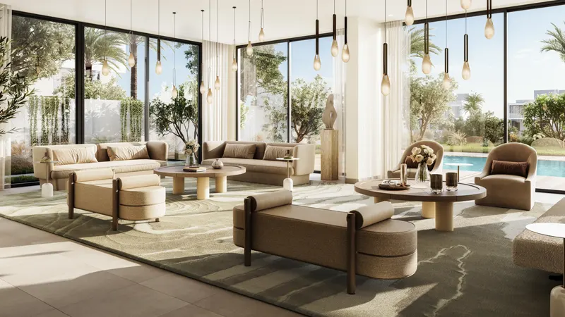 Emaar Properties proudly unveils Farm Gardens Phase 2 at The Valley, presenting luxurious 4 & 5-bedroom villas nestled in the heart of Dubai. These residences, available in two distinct styles, Horizon and Oren, redefine sophistication by seamlessly blending farming activities with a tranquil lifestyle. Each villa is meticulously designed with modern aesthetics and spacious interiors, providing a secure sanctuary for families. Upon entering the development, residents are welcomed by expansive spaces meticulously crafted for refined living. From the elegant architectural design to the floor-to-ceiling windows that flood the interiors with natural light and offer stunning views of the surrounding landscape, every detail exudes tranquility and sophistication.